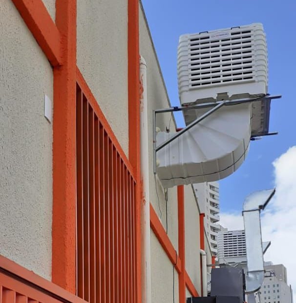 Oferecemos soluções completas em climatização e exaustão de ambientes industriais e comerciais. Instalamos climatizadores evaporativos com dutos para distribuição eficiente do ar, além de exaustores que garantem a renovação constante e a qualidade do ar interno. Ideal para galpões, fábricas, mercados e grandes espaços que precisam de conforto térmico e ventilação adequada.